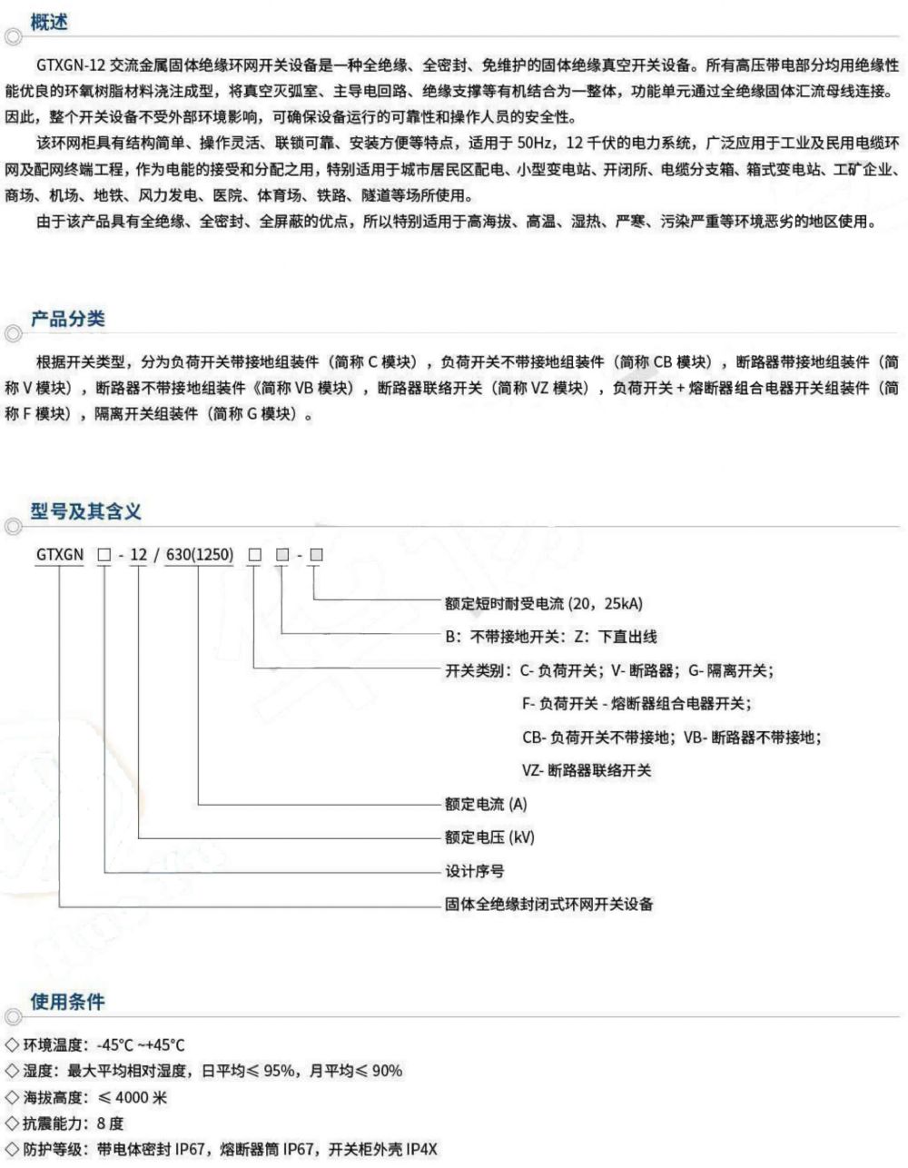 GTXGN-12交流金屬固體絕緣環(huán)網(wǎng)開關設備