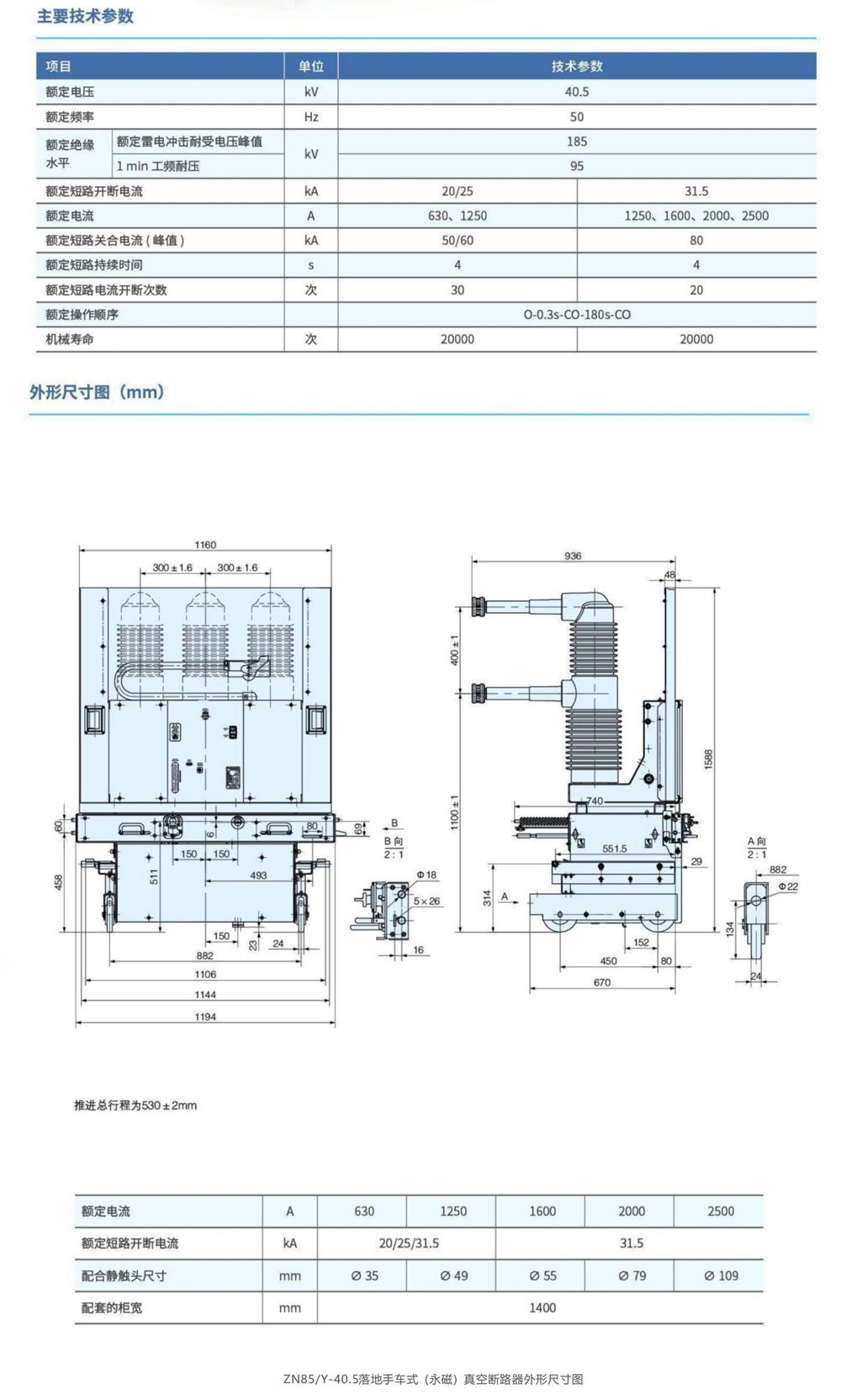 ZN85/Y-40.5落地手車式永磁真空斷路器